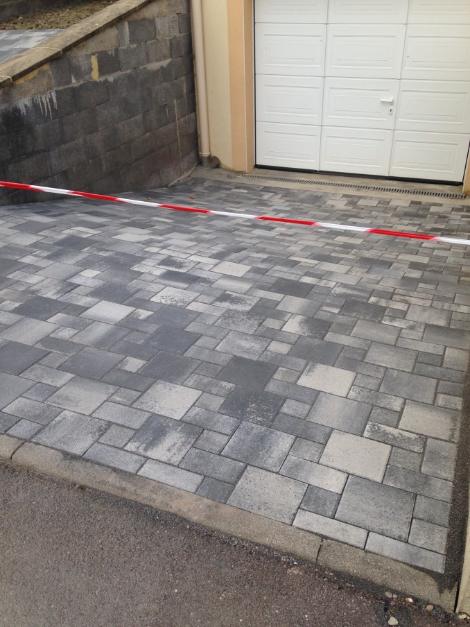POSE DE PAVES KRONIMUS NOIRS ET BLANCS 3 FORMATS EN MELANGE / 57530 COURCELLES CHAUSSY